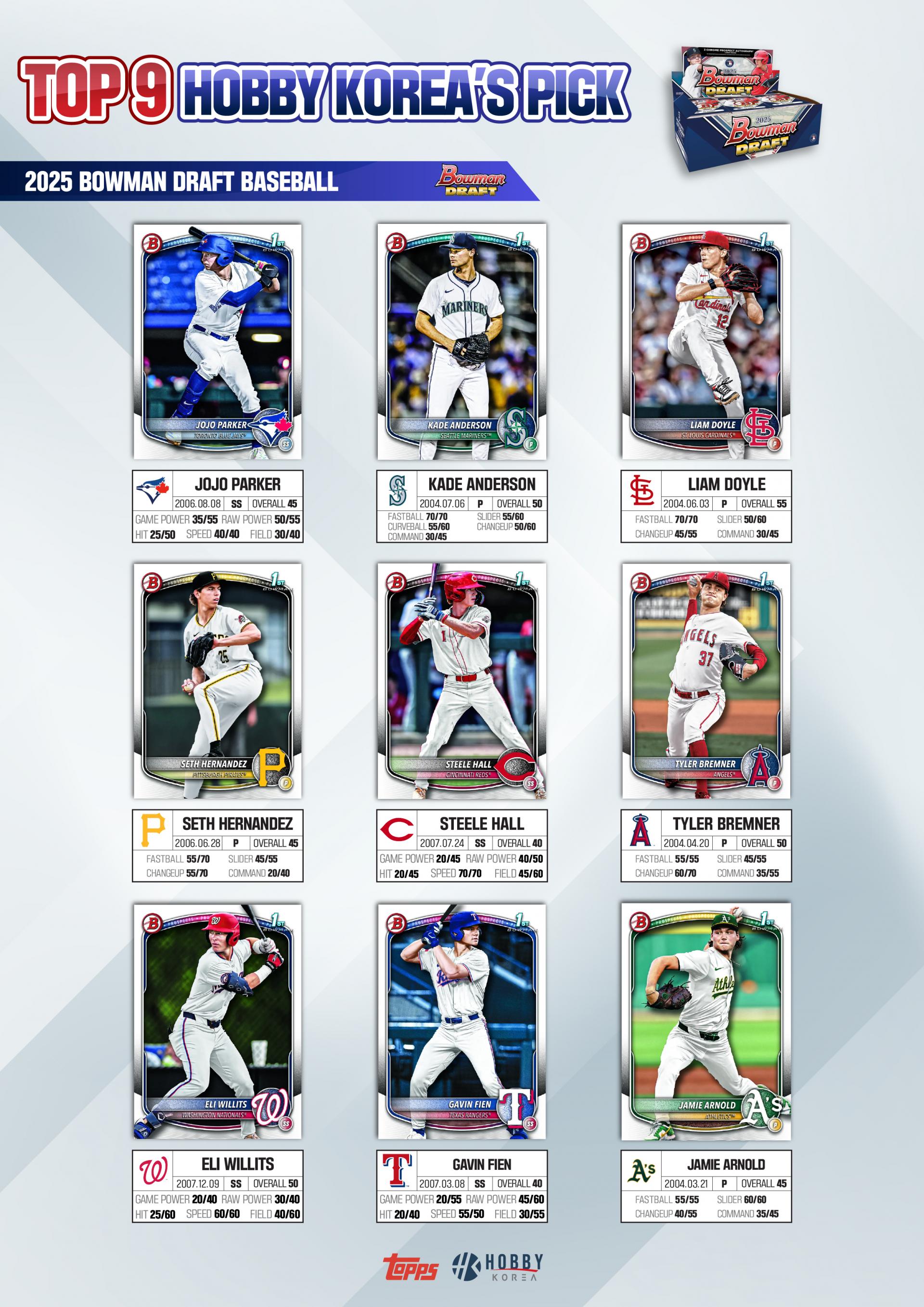 - 2025 MLB 드래프트 출신 최고 유망주들의 1st 보우맨 카드/오토그래프