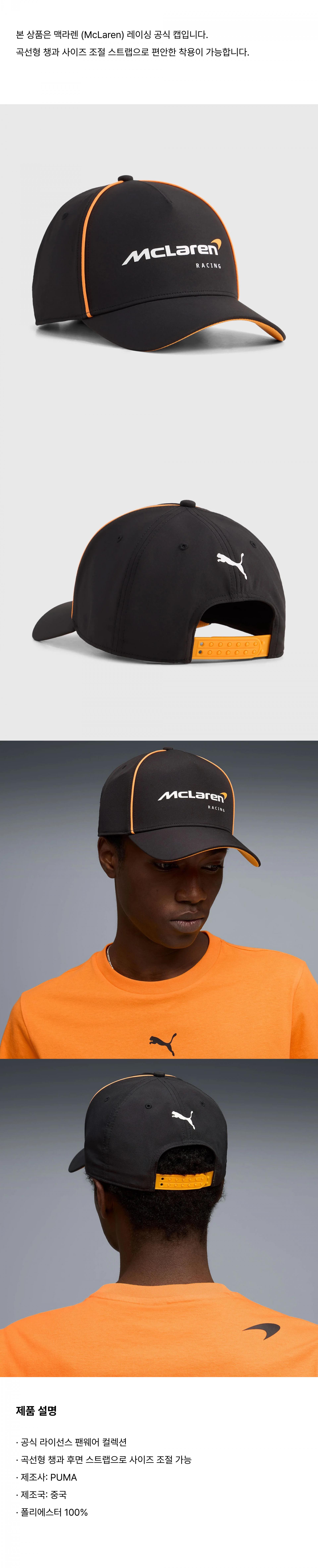 맥라렌 (McLaren) 레이싱 공식 캡입니다.