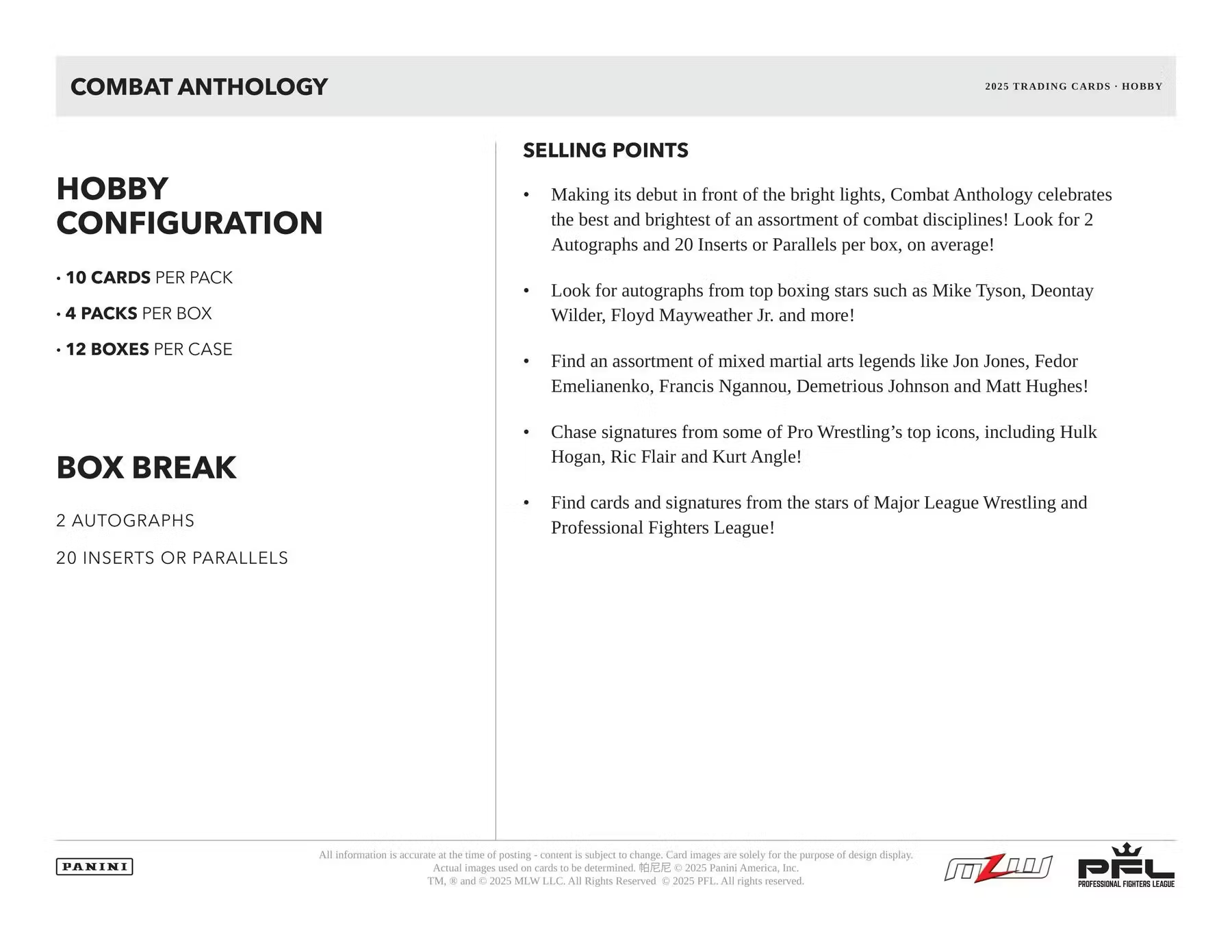 - 격투 스포츠 전 종목을 아우르는 종합 컬렉션 구성 : 메이저 리그 레슬링(MLW), 프로페셔널 파이터스 리그(PFL) 소속 선수 카드 및 오토그래프 수록